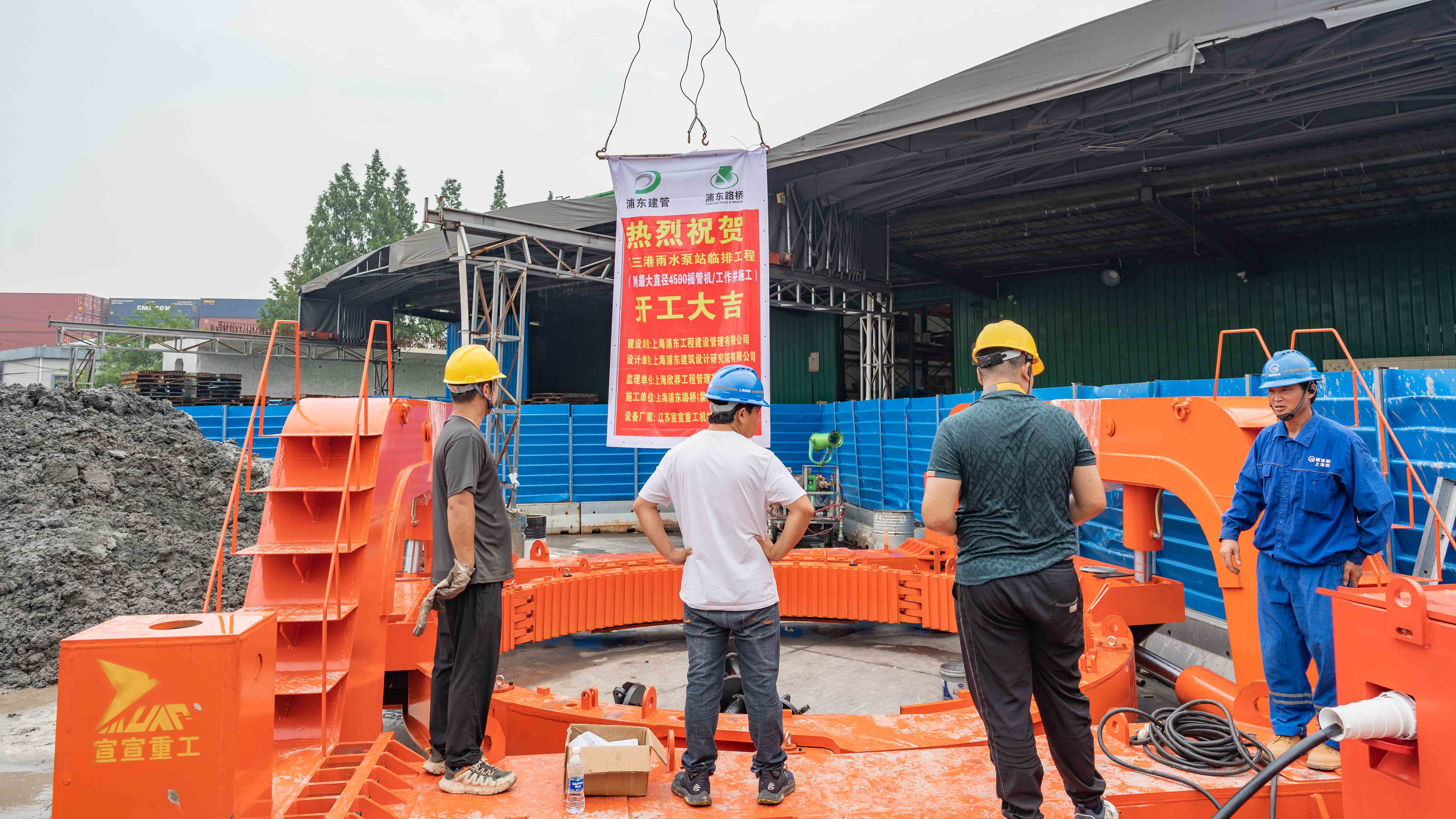 上海浦東三港雨水泵站臨排項目。直徑4590搖管機,井深14米,鋼護筒壁厚40mm。